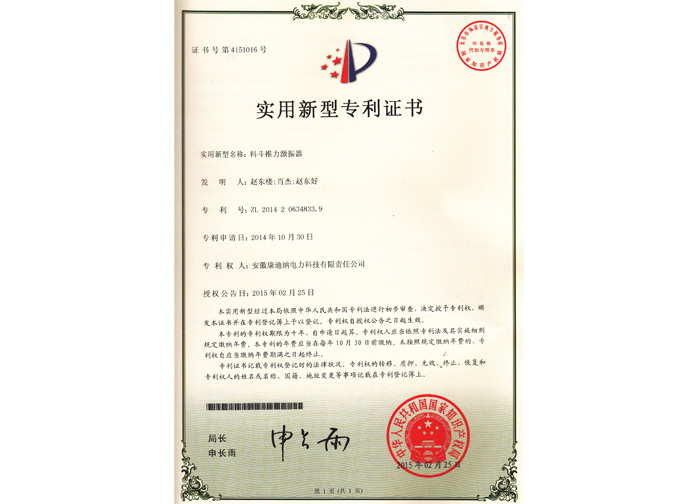 2015實(shí)用新型專利-料斗推力激振器