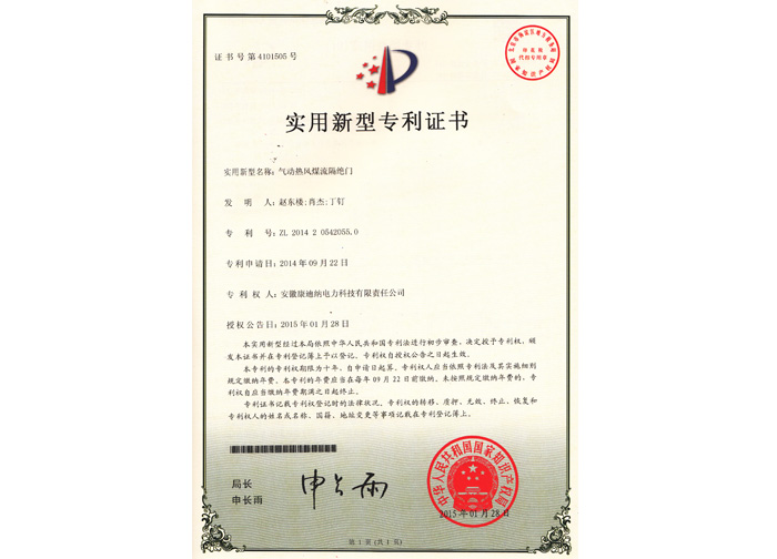 2015實(shí)用新型專利-氣動(dòng)熱風(fēng)煤流隔絕門