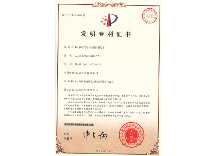 2016發(fā)明專利---插板門運(yùn)動(dòng)裝置控制裝置