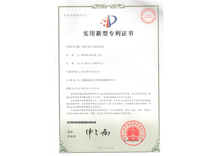 2016干粉計(jì)量氣力疏送裝置
